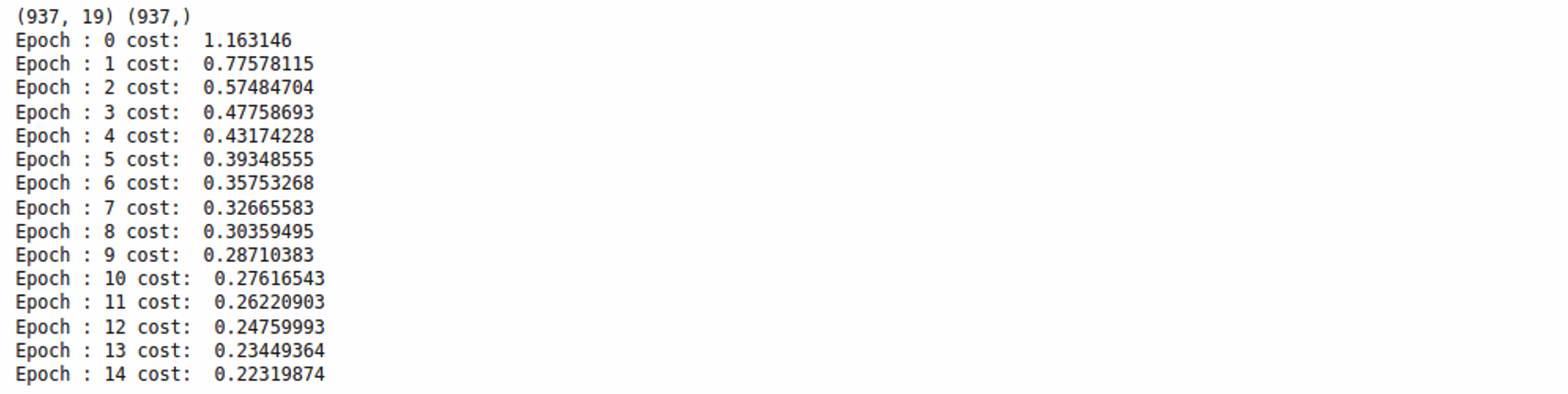 우선 학습한 결과를 보여준다. 이전과 마찬가지로 15번의 학습 횟수를 가진다.