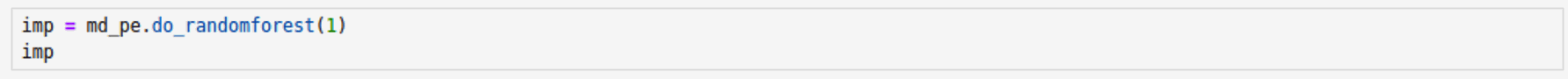 - 이전에 생성했던 md_pe 인스턴스의 do_randomforest()메소드를 호출하여 수행한후, imp에 저장한다.