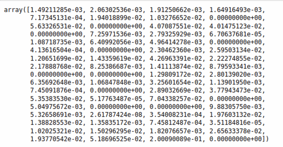 - dict 딕셔너리 자료형으로 변환한다. ex { 'feature1': 0.1, 'feature2': 0.2, ... }