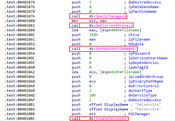 즉. 이 명령어들의 목적은 Lab07-01.exe를 “Malservice”라는 이름의 서비스로 만들기 위함이다.
