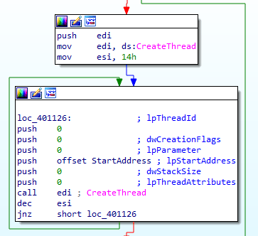 결국 20개의 스레드에서 각각 악성사이트로 무한히 접속을 시도하며 이 때문에 시스템이 마비를 유발시킬 것이다.