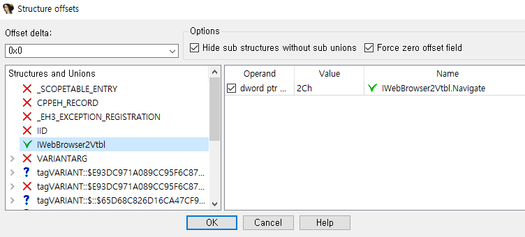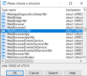 추가한 IwebBrowser2Vtbl을 클릭하고 OK를 누른다.