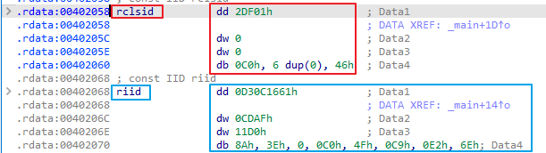그래서 rclsid과 Riid 값은 다음과 같다.