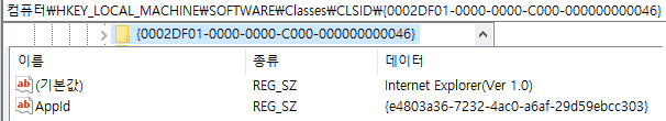 CLSID는 internet Explorer로 이 악성코드가 실행되어 객체를 생성할 때 실행될 파일이다.