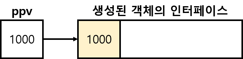 그러므로 ppv는 객체가 생성되면 인터페이스의 포인터가 된다. 실패하면 null을 반환한다.
