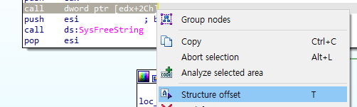 다시 IDA View로 돌아와 오른쪽 버튼- Structure offset을 클릭한다.